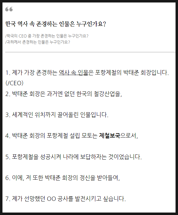 가령, 정말 많이 출제되는 [지원자가 존경하는 인물]에 대해서는,