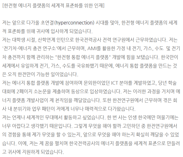 [1] 한국전력공사 지원 동기 및 입사 후 포부