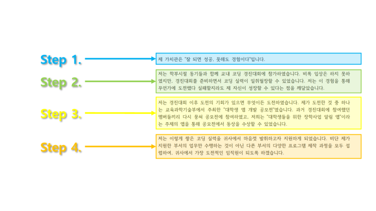 둘째, 단계별 작성법을 통해 누구나 쉽게 자소서를 작성할 수 있습니다.